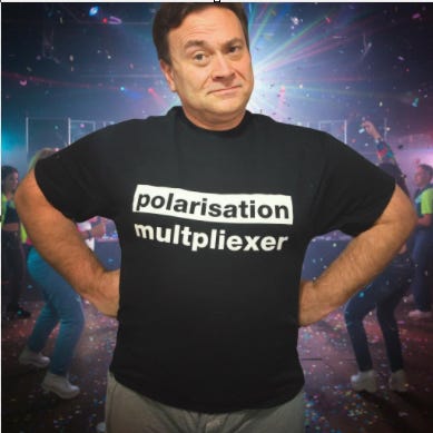 The polarization multiplexer (which btw was my rap name in the 90's) sidesteps these constraints by exploiting properties of electromagnetic waves that previous technologies couldn't leverage effectively.